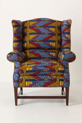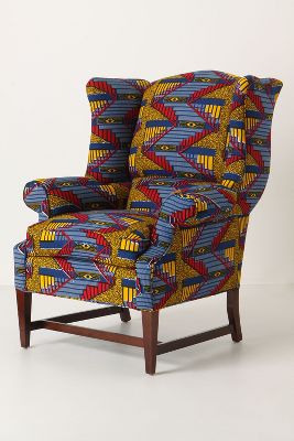 How bizarre. Just a few days ago I picked up an identical chair off the curb, where it was destined for the trash. It's more faded than yours, but otherwise they could be twins. Perhaps there's some sort of Ikat wingback conspiracy afoot...