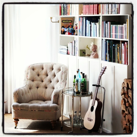 Who has a blooming drum set in their front room/parlour?! Not many design-minded people I know. Mary McDonald (famous LA designer on the show Million Dollar Decorators) didn't even let her client have a grand piano in the living room. But unfortunately, space is tight and there is nowhere else to put it. Plus it is kinda cool looking.